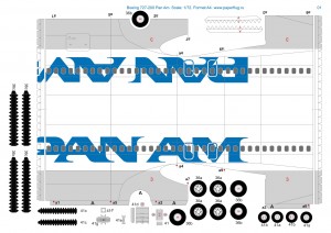 Это мой перекрас-реконструкция разверток бумажной модели Boeing 727 в ливрее Pan Am 80-х годов прошлого столетия.